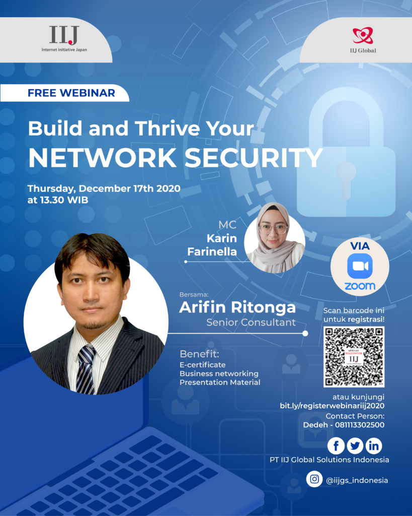 As a reflection of current phenomena, PT IIJ Global Solutions Indonesia, as an IT company that focuses on security issues in Indonesia, will hold a webinar discussing IT Solutions with the theme, “Build and Thrive Your Network Security”.