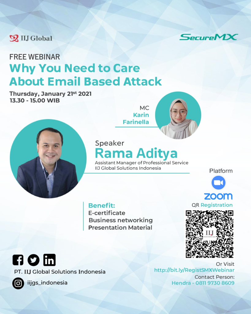 In the professional world, Email-based attack becomes the main threat in business, it could take many forms such as spam, phishing, etc. Most of the time even disguise itself as a common email. Check out our Webinar on how we take care of email-based attacks to protect our customers using cloud-based protection with the theme, “Why You Need to Care About Email Based Attacks”.