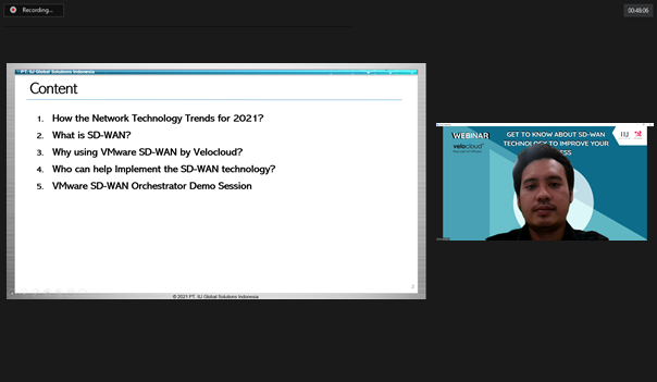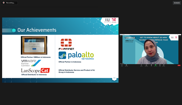 On Wednesday, February 17, 2021. PT IIJ Global Solutions Indonesia has conducted the fourth webinar in February with the theme “Get to Know about SD-WAN Technology to Improve Your Business”. This webinar was hosted by Dhania Annisa as Sales Specialist while the Speaker in this webinar is Rochmad Satrio Wasono as Network Engineer Specialist at PT. IIJ Global Solutions Indonesia.