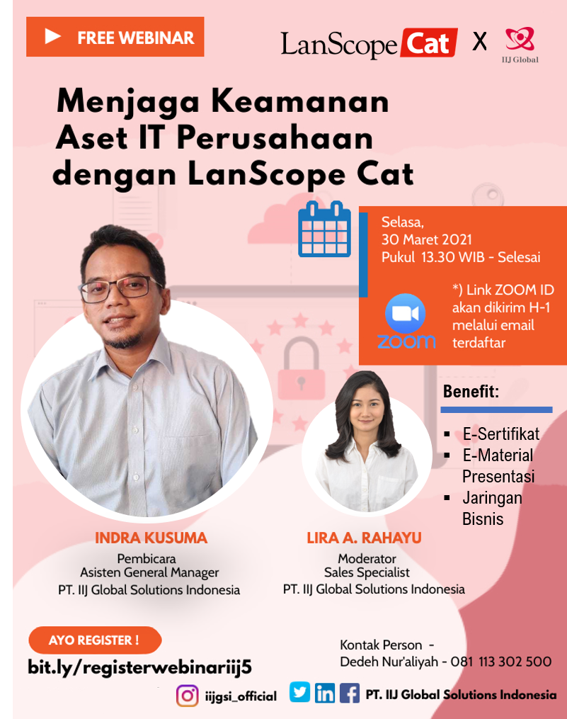 In our webinar with the title, “Menjaga Keamanan Aset IT Perusahaan dengan LanScope CAT”, Presented by PT. IIJ Global Solutions Indonesia.